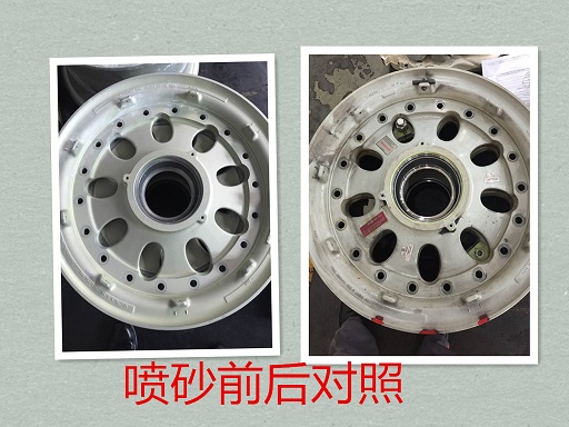 飞机轮毂退漆喷砂机工艺介绍 1、处理工件名称:飞机轮毂 2、工件外形尺寸:适用任何飞机轮毂 3、喷砂部位:油漆部位 4、喷砂目的:清理油漆涂层,做探伤检测后,再喷漆使用 5、喷砂压力:5KG压力 6、喷砂磨料:树脂砂 8、上下件方式:人工、机械手